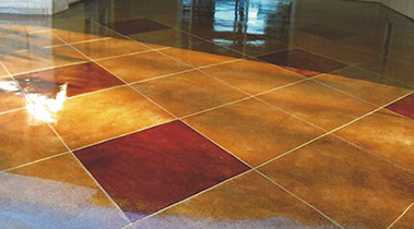 The transformation of concrete into decorative concrete is achieved through the use of a variety of materials that may be applied during the pouring process or after the concrete is cured, these materials and/or systems include but are not limited to stamped concrete, acid staining,