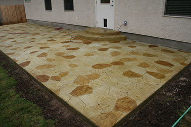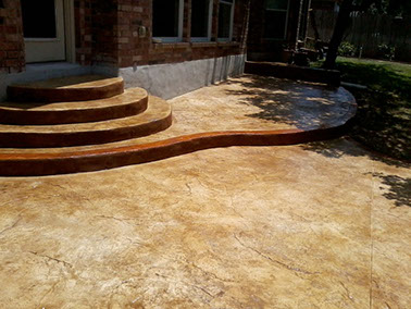 Colors and patterns for stamped cement are often chosen to blend with other stone, tile or textured concrete elements at the residence. Complex designs incorporating steps, courtyards, and fountains can be achieved when patterns are pressed into the concrete. Stamped concrete can also be blended with other decorative concrete elements such as exposed aggregate finishes and acid-etch staining, along with a particular pattern, such as running bond brick, hexagonal tile, worn rock or stone. Concrete provides the perfect canvas for creating an economical replica of more expensive materials, and yet still