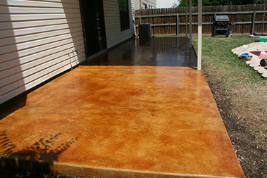 Patio design options include coloring or texturing the patio to match your home's existing architecture, adding subtle tones and patterns to blend with the natural landscape, and stamping the concrete to create the look of natural stone. The abundant decorative possibilities help