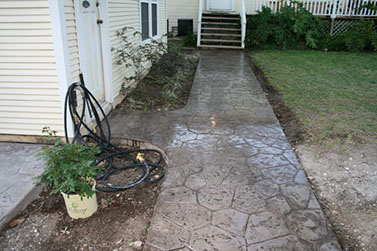 These ribbons can add a decorative touch to your landscape scheme, and have many different types of finishes to accent a patio or lead to a nice, concrete driveway. Walkways can be poured into all kinds of applications,